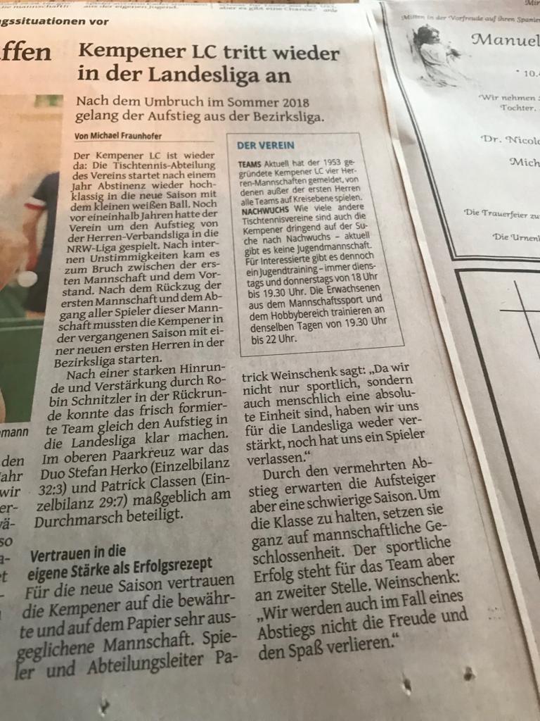 Abteilungsversammlung der TT-Abteilung 2018Kategorie: Verein Bericht der 4. Mannschaft zum 2. Spieltag Spieltag der 4. Mannschaft Am Dienstagabend... Bericht der Rheinischen Post über die JHV 2018... Bericht der Rheinischen Post vom 27.11.2017RP 27. November 2017 | 00.00... Bericht der Westdeutschen Zeitung vom 14.05.2019 über die Tischtennisabteilung ... Bericht über die Tischtennisabteilung in der WZ vom 31.08.19 Seite 2 von 15 StartZurück12345678910WeiterEnde